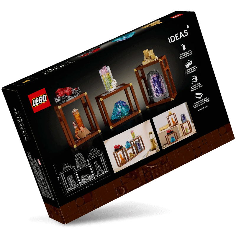 Assembla tre scaffali espositivi eleganti e riorganizza i tuoi minerali a piacimento per una decorazione che evolve con il tuo stile. Con 880 pezzi, istruzioni dettagliate e supporto dell'app LEGO Builder per la visualizzazione 3D, questo set offre un'esperienza costruttiva affascinante e gratificante. Perfetto per collezionisti, appassionati di mineralogia e chi ama trasformare la propria casa in una galleria personale.