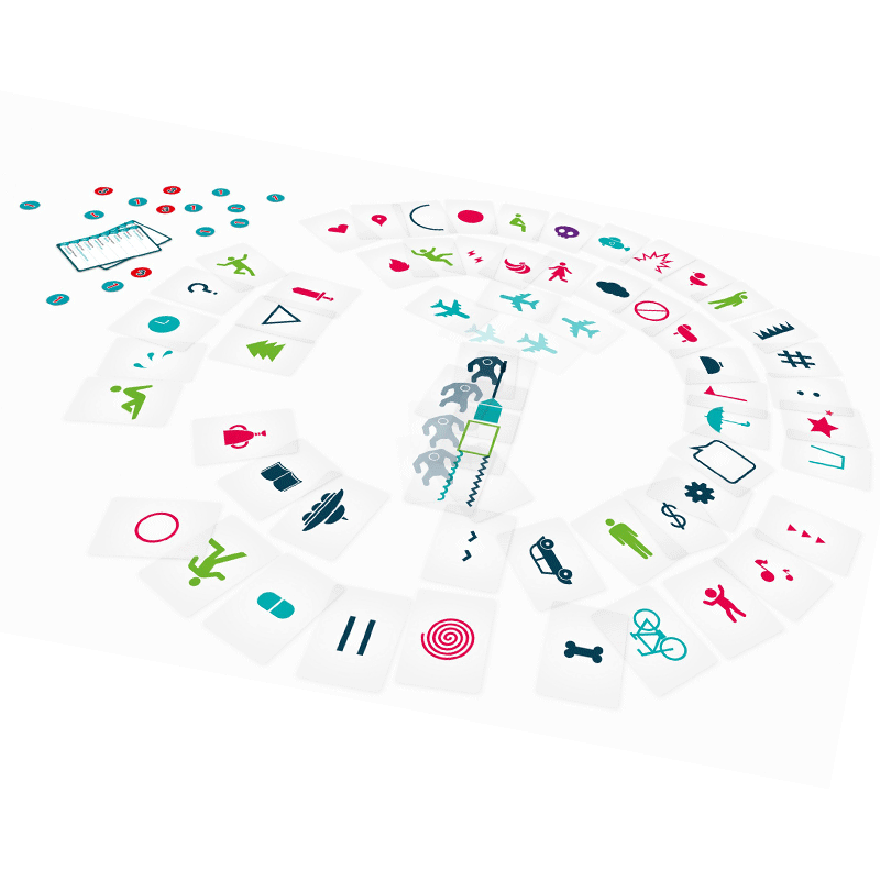 Pesca una carta indovinello, leggi la definizione e poi attiva la tua creatività e cerca tra le carte trasparenti tutte quelle che possono aiutarti a spiegare la parola segreta. Puoi sovrapporle, animarle, spostarle ma senza poter parlare, mimare, indicare o fare rumori! Hai a disposizione anche il tabellone per facilitarti nelle ambientazioni.