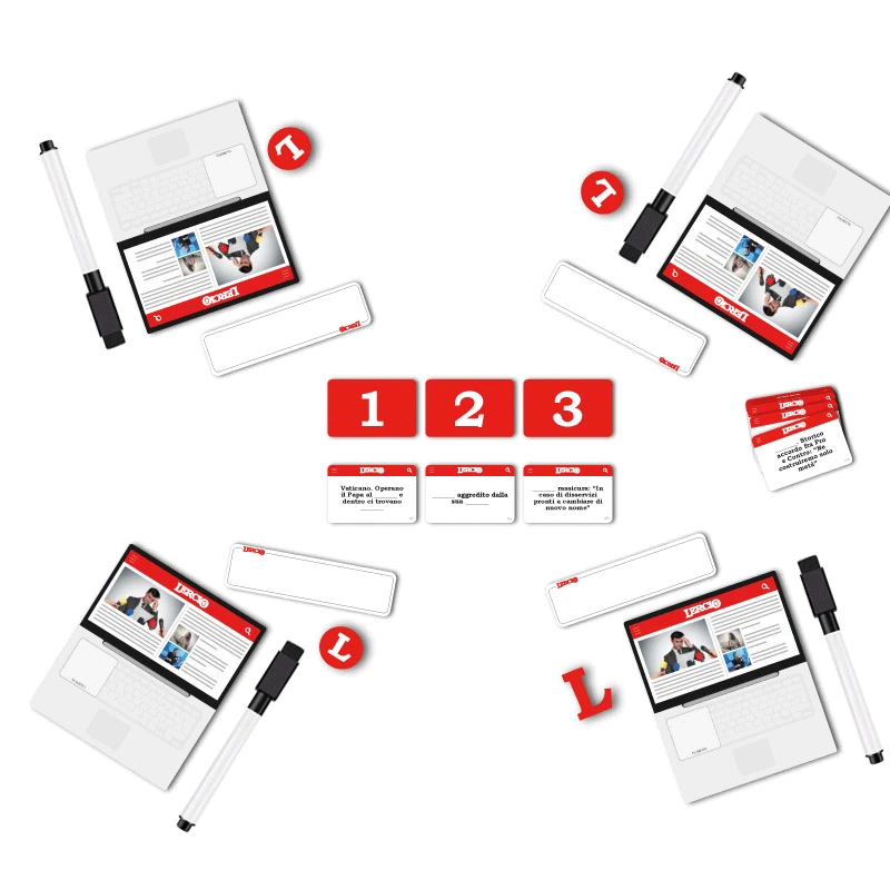Entra nella redazione più folle d'Italia e diventa giornalista di Lercio con questo esilarante party game. Sfida gli altri giocatori a creare i titoli più assurdi e esilaranti per la prima pagina, mescolando le vere notizie del sito satirico con la tua creatività senza limiti. Un party game irriverente e senza pietà, perfetto per chi ama l'umorismo nero e non teme di rovinare cene e amicizie.