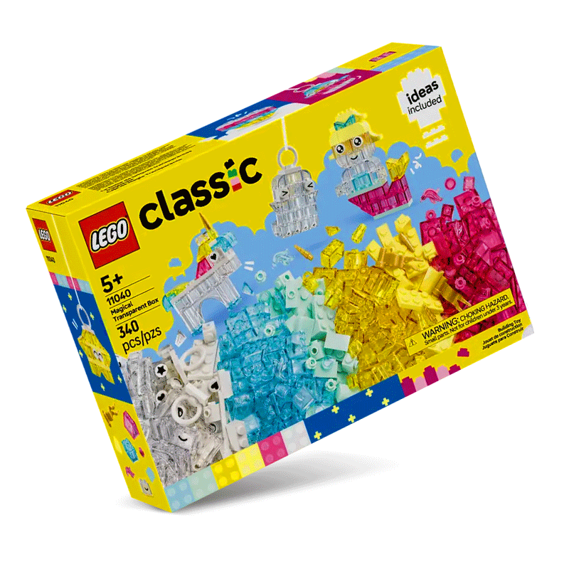 La Scatola magica trasparente LEGO Classic 11040 offre un divertimento creativo che non finisce mai. Con 340 mattoncini colorati, molti dei quali trasparenti, oltre a una varietà di elementi speciali, questo set build-and-display ispira la creatività dei bambini con modelli incantevoli e un infinito gioco di fantasia.