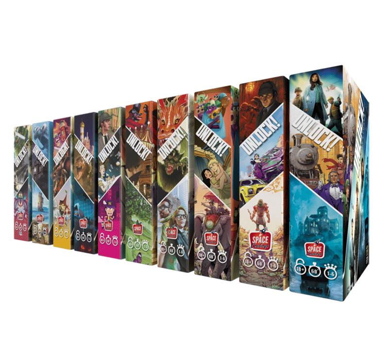 Unlock! è una linea di giochi da tavolo di Asmodee che prende spunto dalle escape room e le ripropone in modalità “casalinga”. Puoi giocare sia in solitario che in famiglia o con amici per collaborare alla risoluzione degli enigmi.